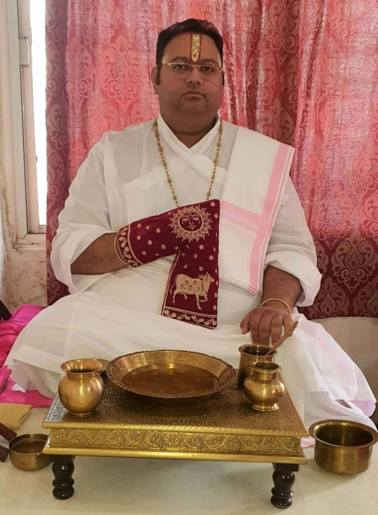 Deeply rooted in spiritual discipline, Je Je follows a dedicated daily routine of Japa-Paath, Sandhya Vandanam, and Brahma Yagya, while also pursuing advanced knowledge in Mantra Vidya under his Guru. Every year during the auspicious month of Bhadrapad, he independently completes the Saaptahik Shrimad Bhagwat Parayan along with Nitya Shodashopchar Puja, a practice traditionally performed by learned Vyasjis. Additionally, for the upliftment of the Vaishnav community, he undertakes elaborate Anushthans such as Narasimhaarchan and Gopalaarchan during Chaitra and Ashwin Navratri, followed by Dashaansh Homa, continuing the sacred traditions of his Acharya lineage.